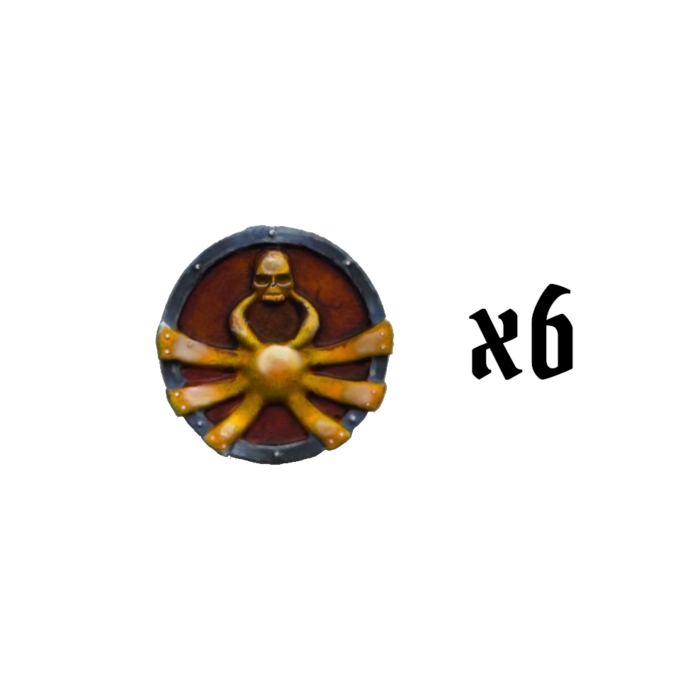 Sei scudi di metallo con il simbolo del signore dei lich